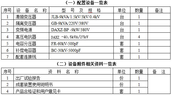 15kV电缆,500mm2,长度2000m,电容量≤0.92μF,试验频率为30-300Hz,
